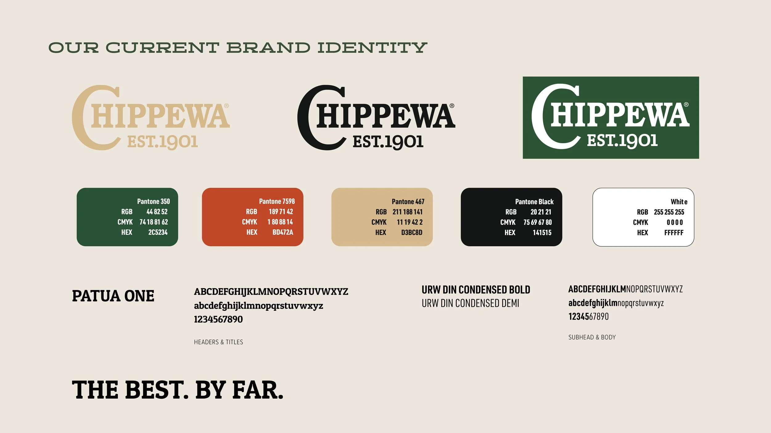 To honor this legacy, we retained key elements and colors from previous versions of the Chippewa logo, blending tradition with modern design. The proposal included two separate logos: one tailored for work and the other for lifestyle, ensuring that each captures the essence of the brand while appealing to different audiences. My goal was to connect with a new generation while staying true to what makes Chippewa special.